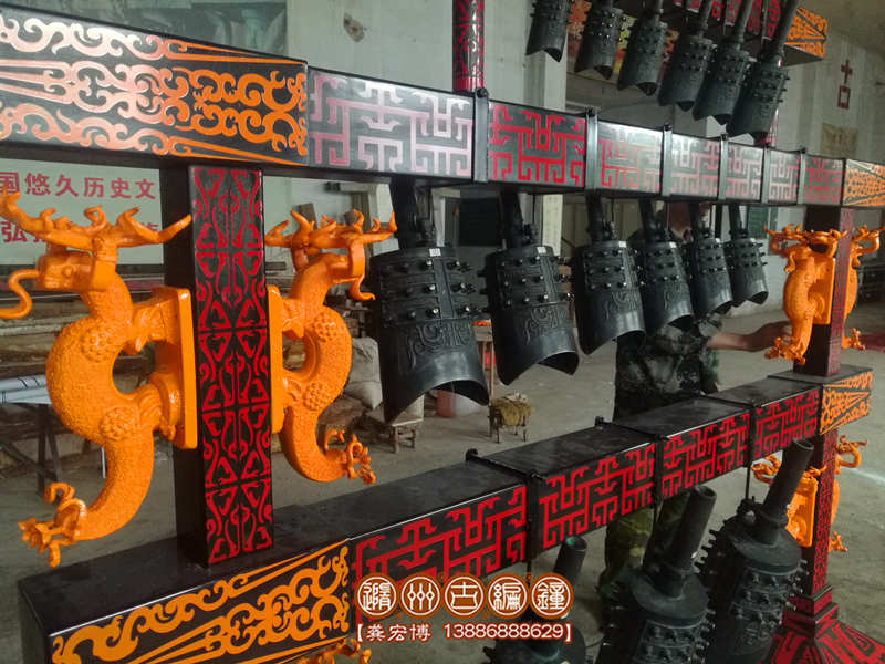 古編鐘公司特色定制編鐘系列,根據(jù)客戶要求制作的仿古演奏型編鐘,規(guī)格、紋飾、音階、顏色及造價可都按客戶指定要求進行創(chuàng)作并加工制作,這套編鐘區(qū)別于一般曾侯乙編鐘,滿足了客戶的特殊要求。