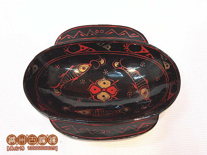 耳杯造型為器口元寶形,小耳,淺腹,平底,往往以盤承托。耳杯有方形和圓形兩種。自戰(zhàn)國(guó)以來(lái),一直經(jīng)久不衰。主要為飲酒器,還與古代“曲水流觴”的活動(dòng)有關(guān)。據(jù)考,古代習(xí)俗于三月初,為祓除不詳,在水之上游投入盛滿酒的耳杯,任其漂流而下,杯受阻則取而飲之。所以耳杯的耳大如羽扇,既利于漂浮,又便于提取。