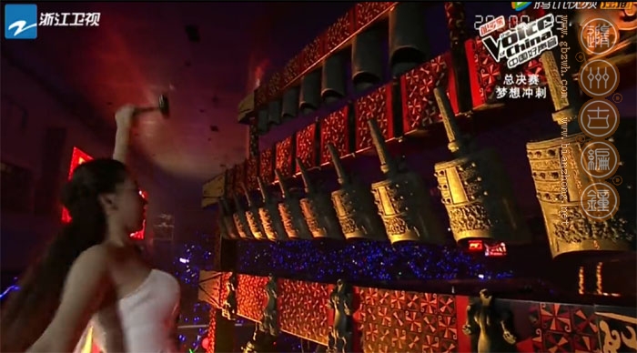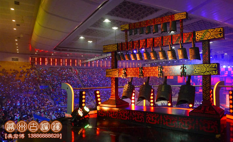 古編鐘公司受節(jié)目組委托將一套中型青銅編鐘運達活動現(xiàn)場,參加好聲音北京總決賽的開場部分,晚會以敲擊中國2400多年前的編鐘之聲開場,寓意中國文化底蘊豐厚,好聲音自古傳今,節(jié)目由此發(fā)掘出中國眾多好聲音學(xué)員,開創(chuàng)新一代造星之路。